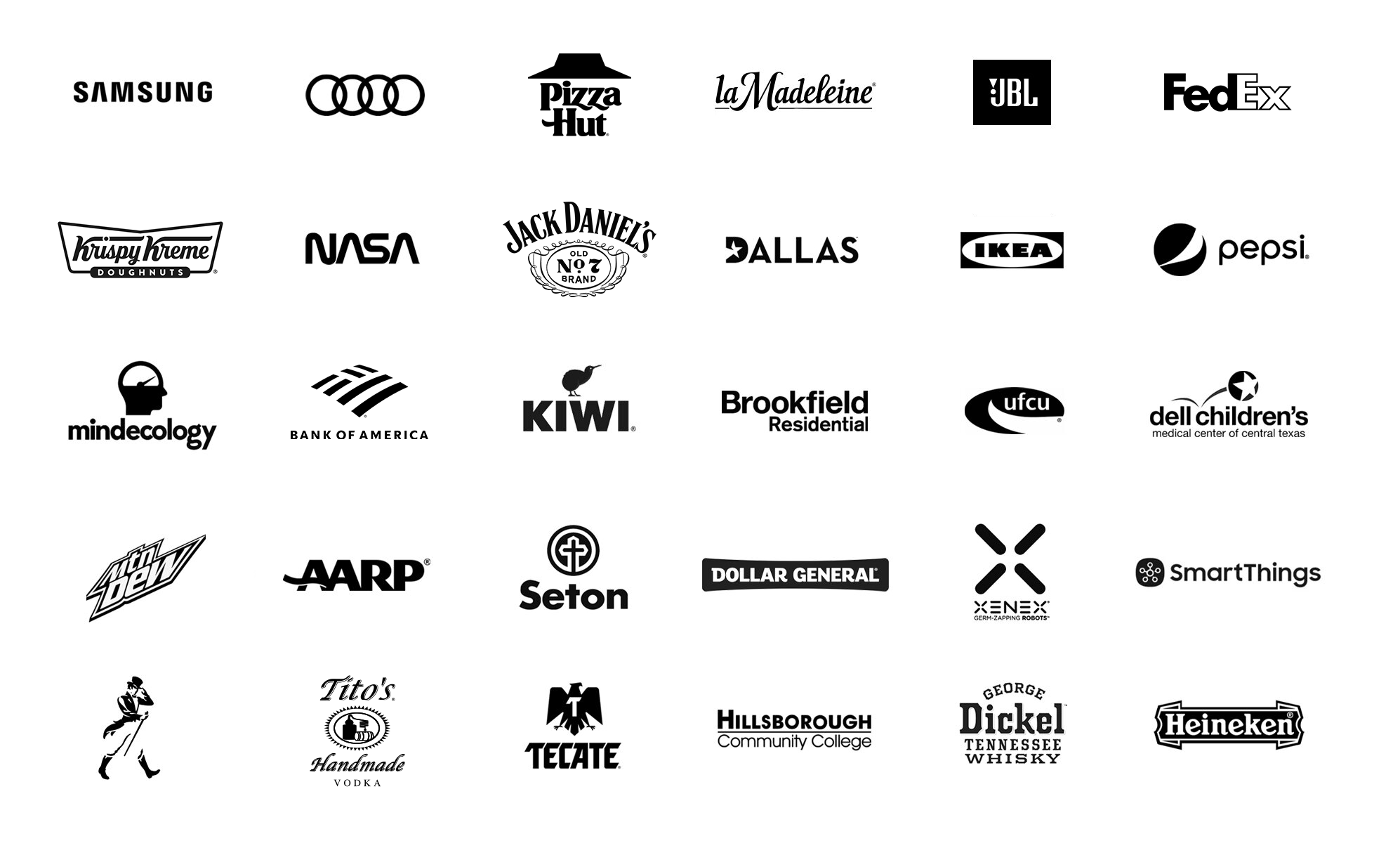 Below is a list of clients that I've had the pleasure of working with, spanning a broad range of industries including tech, automotive, food service, beverage, healthcare, etc.